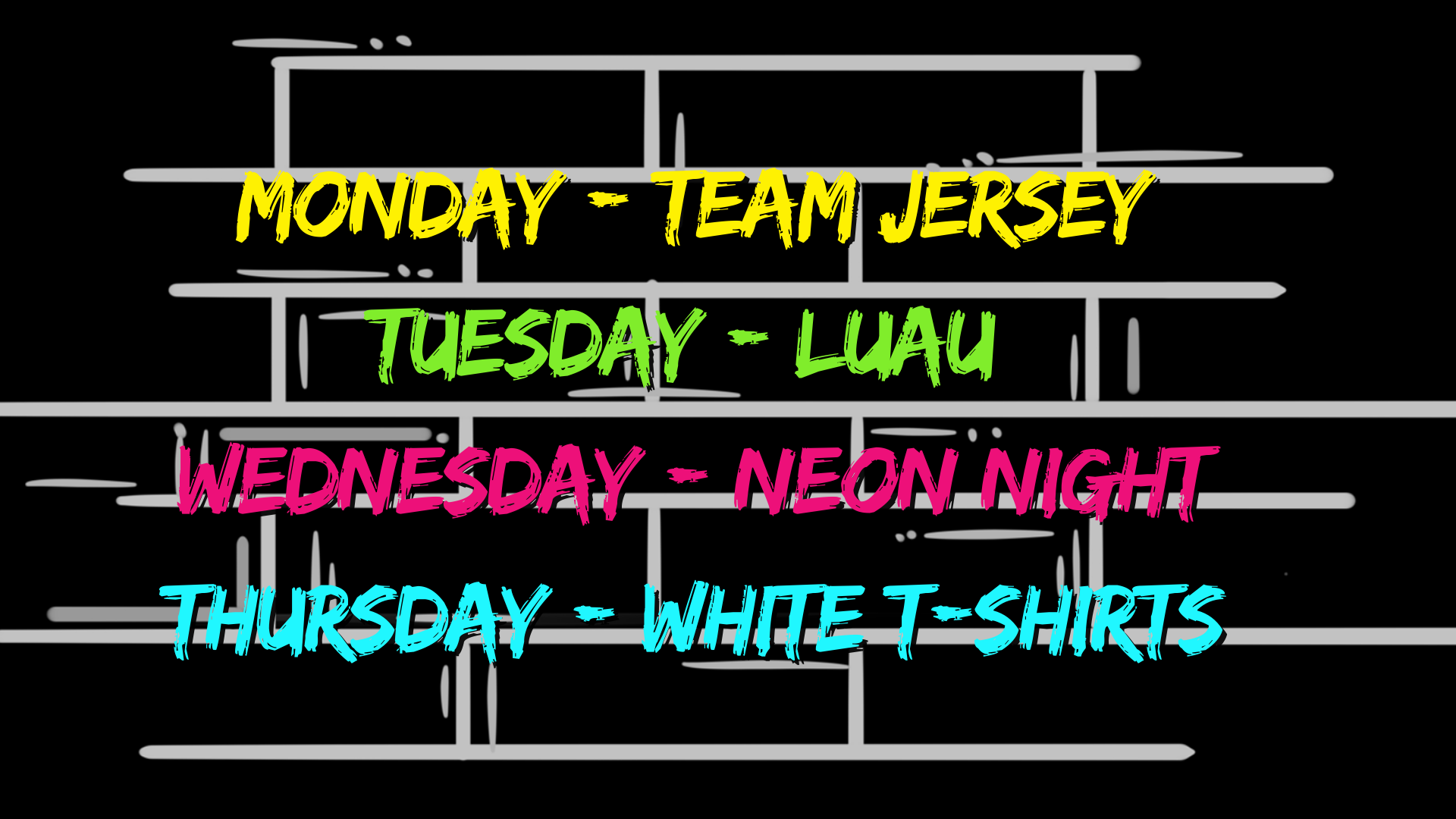 Each day we will have a fun camp theme. Here are the themes for camp this year! Bring items to wear for each theme!
